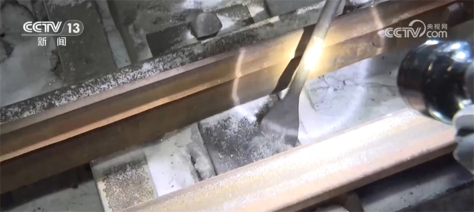 我在車站里看到不僅有給列車編組的司機(jī)、調(diào)度員,我還看到在鐵路的道岔還有很多工作人員正在做一些積雪清掃還有除冰的工作。我們可以湊近看一下,可以看到道岔這里現(xiàn)在是被凍住了,已經(jīng)沒(méi)法推動(dòng)這個(gè)鐵軌,而這的空間又非常小,所以只能靠這樣的小鏟子一點(diǎn)點(diǎn)鏟,才能把這塊兒的積雪和冰給清干凈。
