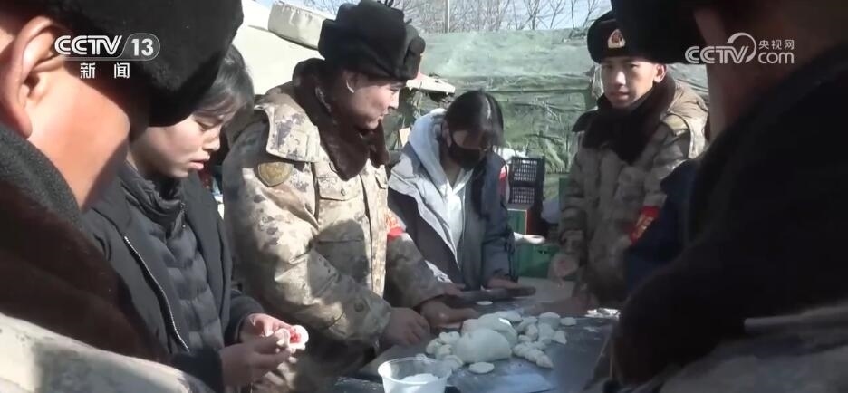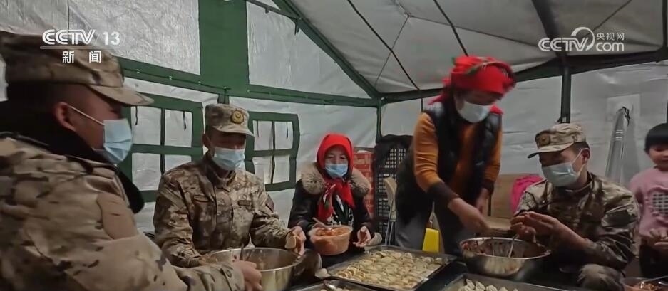 央視網(wǎng)消息:今天(12月22日)是冬至,正在執(zhí)行抗震救災任務的部隊官兵特意準備了熱氣騰騰的餃子和豐盛的食物,為群眾送去溫暖和祝福。