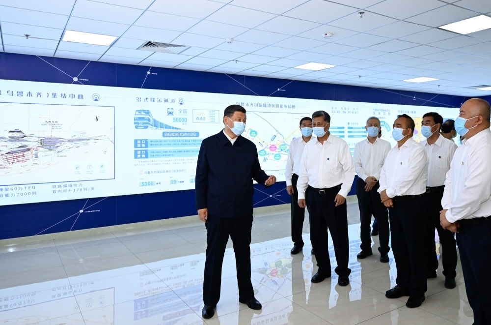 2022年7月12日下午,習(xí)近平在新疆烏魯木齊國際陸港區(qū)考察。