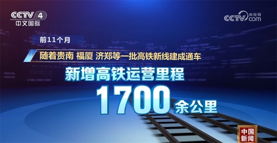 今年以來,國鐵集團以聯(lián)網(wǎng)、補網(wǎng)、強鏈為重點,高質(zhì)量推進鐵路規(guī)劃建設(shè)。前11個月,全國鐵路完成固定資產(chǎn)投資同比增長7.4%。隨著貴南、福廈、濟鄭等一批高鐵新線建成通車,新增高鐵運營里程1700余公里,“八縱八橫”高鐵網(wǎng)越織越密。