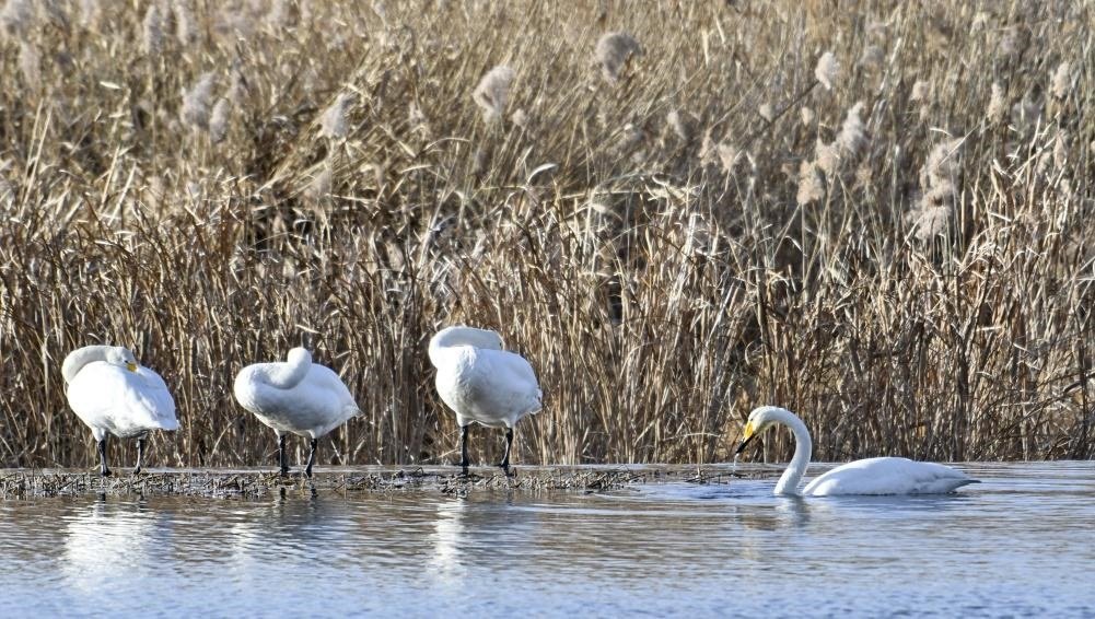 圖為天鵝在密云水庫流域太師屯小南河內(nèi)休憩。 新華社記者 李欣 攝