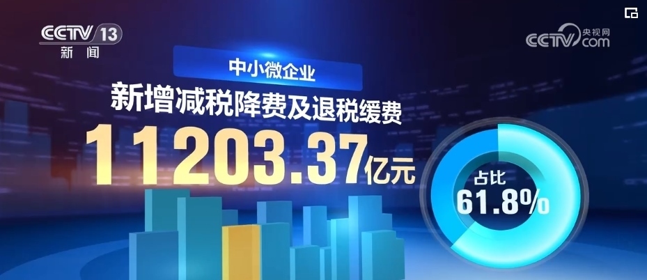 分企業(yè)規(guī)???,中小微企業(yè)受益最明顯,新增減稅降費及退稅緩費11203.37億元,占比61.8%。