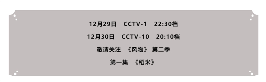 2023年歲末,敬請(qǐng)鎖定 CCTV-1 綜合頻道,紀(jì)錄片《風(fēng)物》(第二季)帶您在別具一格的風(fēng)物畫卷中解鎖自然饋贈(zèng)的美好風(fēng)物,探尋山河之間的風(fēng)物文化,感受人類與自然和諧共生的生動(dòng)圖景。