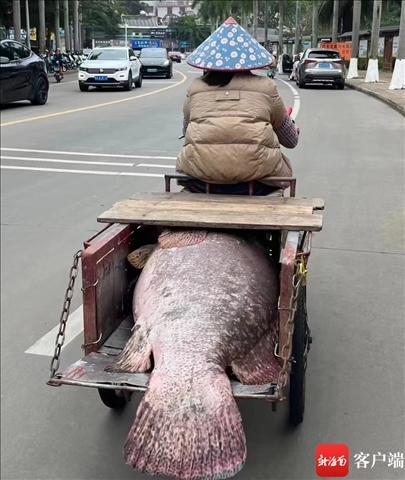 ·近日,海口一漁民釣到一條重約200斤的罕見(jiàn)巨型石斑魚(yú)。