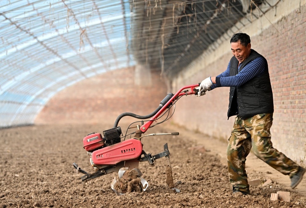 在天津市西青區(qū)辛口鎮(zhèn)水高莊村,農(nóng)戶(hù)在修繕后的大棚內(nèi)勞作(12月12日攝)。新華社記者 李然 攝