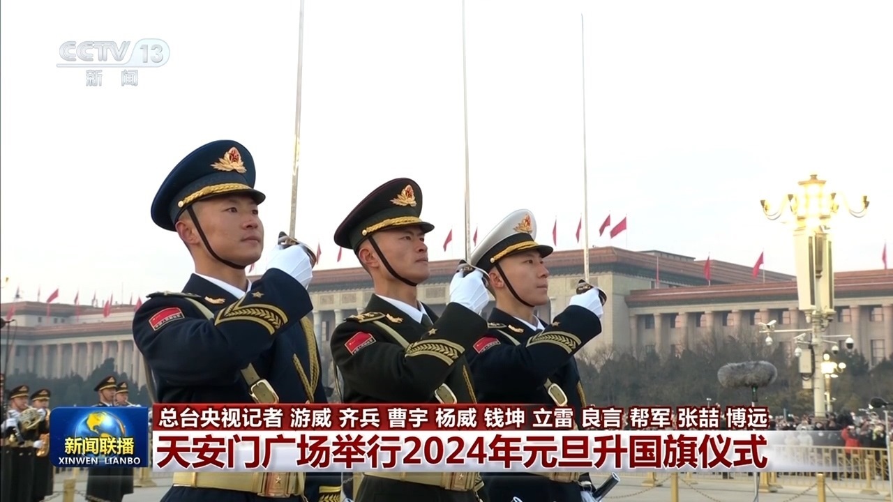 央視網(wǎng)消息(新聞聯(lián)播):2024年新年第一天,在北京天安門廣場舉行了隆重莊嚴(yán)的升國旗儀式。