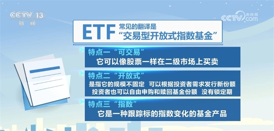 央視網(wǎng)消息:在2023年的資本市場上,有一類產(chǎn)品受到了投資者關注,從產(chǎn)品的種類到規(guī)模都出現(xiàn)明顯增長,這就是ETF,也就是我們常說的“交易型開放式指數(shù)基金”。那么什么是指數(shù)基金,ETF又具體包含哪些內(nèi)容呢?我們來了解一下。?