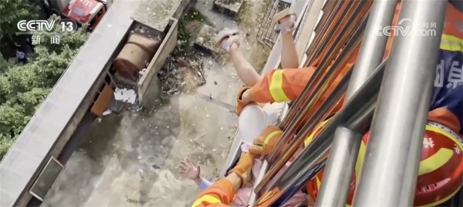 與此同時(shí),消防部門來到樓上,在用工具強(qiáng)行破門之后,快速來到陽臺(tái),最終在多方力量的配合下,成功將被困的小女孩兒救下。