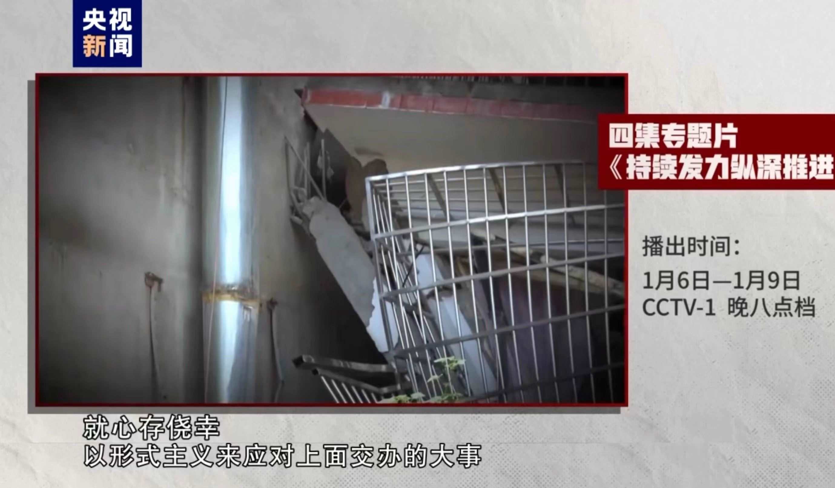 由中央紀(jì)委國(guó)家監(jiān)委宣傳部與中央廣播電視總臺(tái)央視聯(lián)合攝制的年度反腐大片《持續(xù)發(fā)力縱深推進(jìn)》,將于1月6日至9日在央視綜合頻道晚8點(diǎn)檔播出。專題片共四集,選取了紀(jì)檢監(jiān)察機(jī)關(guān)查處的12個(gè)典型案例: