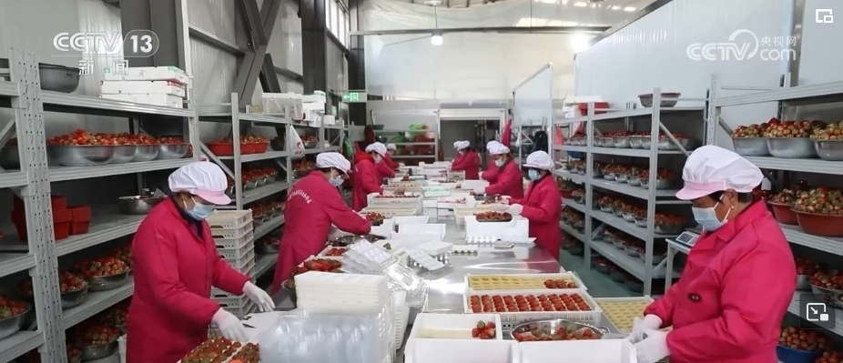 在當(dāng)?shù)氐囊患覍I(yè)合作社,工人們正在忙著分揀從農(nóng)戶們手中收上來的西紅柿,精心包裝后將被運往全國各地。