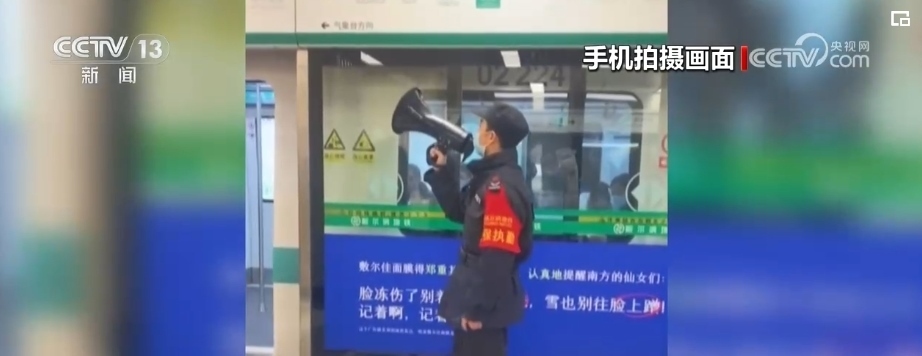 在地鐵站,執(zhí)勤小哥暖心喊話,祝大家新年快樂(lè)。