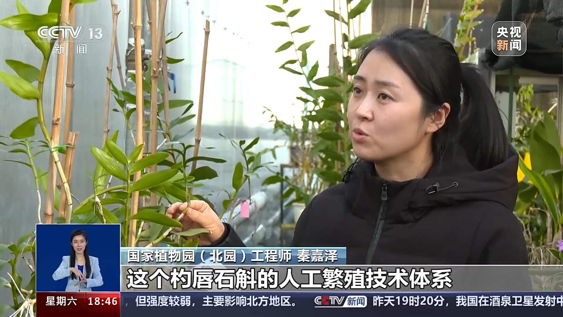 國家植物園(北園)工程師 秦嘉澤:它在野外是屬于瀕危的一個狀態(tài),當下,我們已經(jīng)成功建立了這個杓唇石斛的人工繁殖技術體系,然后也成功繁育出了1000多株幼苗。