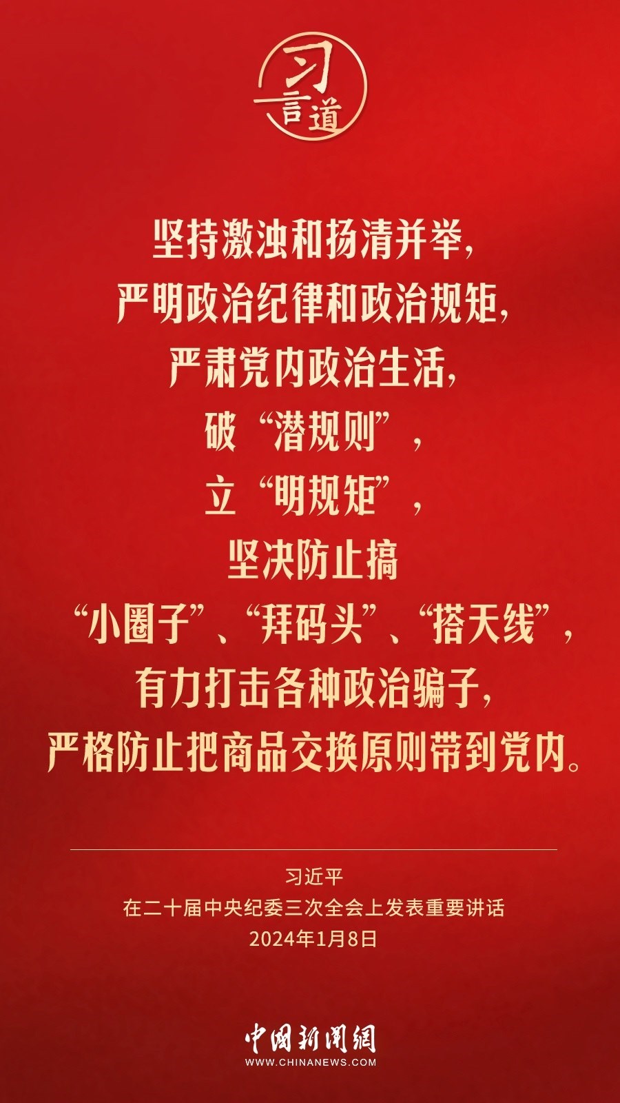中共中央總書記、國家主席、中央軍委主席習(xí)近平8日上午在中國共產(chǎn)黨第二十屆中央紀(jì)律檢查委員會第三次全體會議上發(fā)表重要講話。習(xí)近平指出——