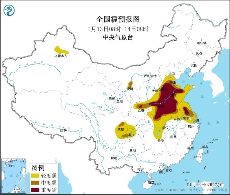 此外,今天華北中南部、黃淮、江淮、江漢、陜西關(guān)中等地大氣擴(kuò)散條件較差,有輕至中度霾,其中河北中南部、山東西部、河南中北部、陜西關(guān)中等地有重度霾。受冷空氣影響,14日白天起,華北、黃淮、江淮等地霾天氣自北向南逐漸減弱消散。