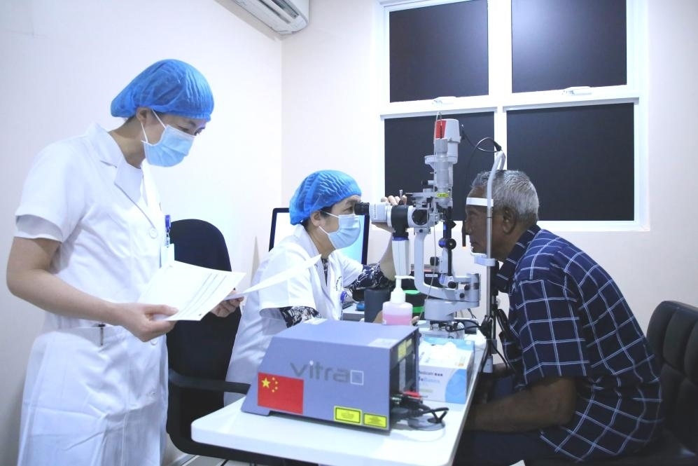 69歲的艾哈邁德·卡洛是中國醫(yī)療隊“光明行”活動的獲益者。兩個兒子曾帶著患有眼疾多年的老人輾轉多家醫(yī)院,均因手術難度大而無法得到有效治療。2023年,中國醫(yī)療隊醫(yī)生經(jīng)過充分評估后,給老人成功實施了手術。術后揭開眼罩時,老人家激動地說:“醫(yī)生,我可以看到你的胸牌了,謝謝你!”老人的兒子也在社交媒體發(fā)帖說:“真誠感謝中國醫(yī)生?!背酥尾?,中方還著力培訓當?shù)蒯t(yī)務人員,力爭為當?shù)卮蛟煲恢А皫Р蛔摺钡难劭茖<谊犖椤?/p>