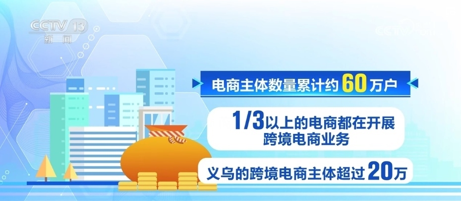 2023年,義烏的市場經(jīng)營主體突破100萬戶。其中,新設(shè)電商主體17.57萬戶,同比增長48.33%。電商主體數(shù)量累計約60萬戶,而三分之一以上的電商都在開展跨境業(yè)務(wù),義烏的跨境電商主體超過20萬。
