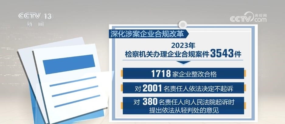 深化涉案企業(yè)合規(guī)改革。2023年檢察機關(guān)辦理企業(yè)合規(guī)案件3543件,其中1718家企業(yè)整改合格,對2001名責任人依法決定不起訴,對380名責任人向人民法院起訴時提出依法從輕判處的意見。加強知識產(chǎn)權(quán)綜合司法保護。審查起訴侵犯知識產(chǎn)權(quán)犯罪案件2.8萬人,同比上升53.3%;受理知識產(chǎn)權(quán)民事行政訴訟監(jiān)督案件2240件,同比增長1.7倍。持續(xù)加大對信息技術(shù)、生物醫(yī)藥、新能源等高科技領(lǐng)域知識產(chǎn)權(quán)保護力度。針對涉知識產(chǎn)權(quán)惡意訴訟、惡意侵權(quán)多發(fā)問題,持續(xù)組織開展專項監(jiān)督,促進營造良好創(chuàng)新生態(tài)。