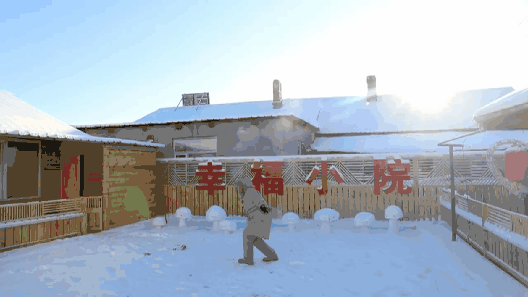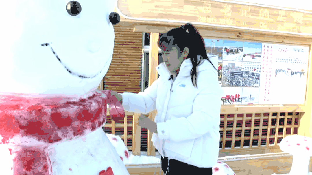 中午,民宿經營者史瑞娟趁著客人們休息,給雪人上色。今年冬天,史瑞娟在家門口堆了兩個大雪人,還把小院重新布置了一番。效果挺明顯,幾乎天天滿房。