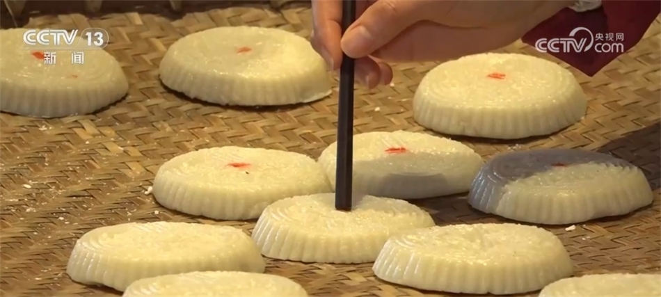 這幾天,黃山市黃山區(qū)湯口鎮(zhèn)的村民們正忙著打“食桃”。村民們將糯米和秈米碾成米粉,按比例加熱水?dāng)嚢?,再將一塊一塊球狀的米粉團(tuán)摁進(jìn)模子里敲打出來,打好的食桃放入蒸箱中,蒸二十分鐘即可出鍋。蒸熟的食桃口感綿糯,刻著各種吉祥圖案,寓意著人們對(duì)新一年的祝福和期盼。