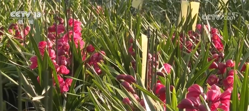 在云南,不同類型的年宵花也開始大量上市。在玉溪江川區(qū)九溪鎮(zhèn)的花卉大棚里,整齊擺放的大花蕙蘭競(jìng)相開放。大花蕙蘭可單獨(dú)擺放,也可制作成胸花等小型花藝,特別是瓶插期長(zhǎng)達(dá)45天,成為這段時(shí)間的暢銷花。