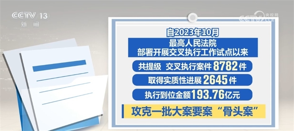 最高人民法院介紹,執(zhí)行難中常見(jiàn)被執(zhí)行人是當(dāng)?shù)刂匾髽I(yè)、納稅大戶,甚至是重點(diǎn)國(guó)企或行政部門(mén)等情況。交叉執(zhí)行就是要讓接受指定的法院在不受牽絆、沒(méi)有包袱、完全依法自主的條件下力推案件執(zhí)行。據(jù)統(tǒng)計(jì),開(kāi)展交叉執(zhí)行工作試點(diǎn)以來(lái),共提級(jí)、交叉執(zhí)行案件8782件,取得實(shí)質(zhì)性進(jìn)展2645件,執(zhí)行到位金額193.76億元,攻克了一批大案要案“骨頭案”。最高人民法院要求,上級(jí)法院發(fā)現(xiàn)原執(zhí)行法院存在消極執(zhí)行、拖延執(zhí)行等執(zhí)行不力情形,發(fā)現(xiàn)違紀(jì)違法問(wèn)題線索的,應(yīng)當(dāng)嚴(yán)肅依紀(jì)依法查處、追究責(zé)任。