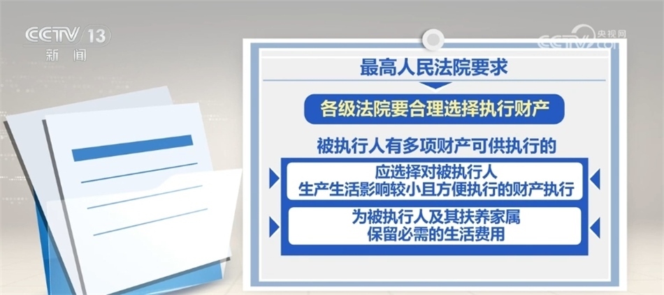 最高人民法院要求,各級(jí)法院要合理選擇執(zhí)行財(cái)產(chǎn),被執(zhí)行人有多項(xiàng)財(cái)產(chǎn)可供執(zhí)行的,應(yīng)選擇對(duì)被執(zhí)行人生產(chǎn)生活影響較小且方便執(zhí)行的財(cái)產(chǎn)執(zhí)行,同時(shí),為被執(zhí)行人及其扶養(yǎng)家屬保留必需的生活費(fèi)用。對(duì)涉及企業(yè)尤其是民營(yíng)企業(yè)的,要嚴(yán)格區(qū)分企業(yè)法人財(cái)產(chǎn)與股東個(gè)人財(cái)產(chǎn),嚴(yán)禁違法查封案外人財(cái)產(chǎn),嚴(yán)禁對(duì)不得查封的財(cái)產(chǎn)采取執(zhí)行措施,堅(jiān)決杜絕超標(biāo)的查封,切實(shí)保護(hù)民營(yíng)企業(yè)等企業(yè)法人、企業(yè)家和各類(lèi)市場(chǎng)主體合法權(quán)益。