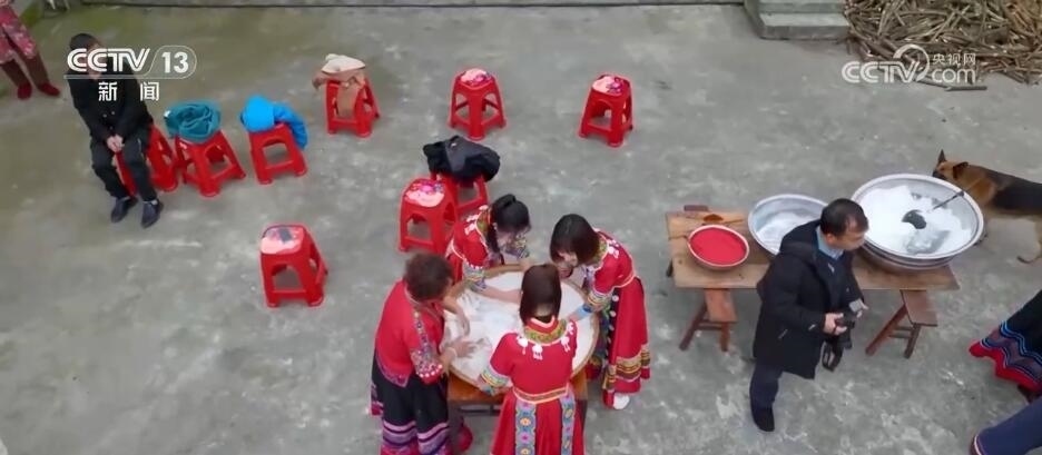 隨著春節(jié)的臨近,年味漸漸濃了起來。在江口縣凈河村村民李洪江家中,傳來陣陣舂碓聲。李洪江一家和鄰居們齊聚一堂,做起了“紅粑粑”,大家忙得不亦樂乎。