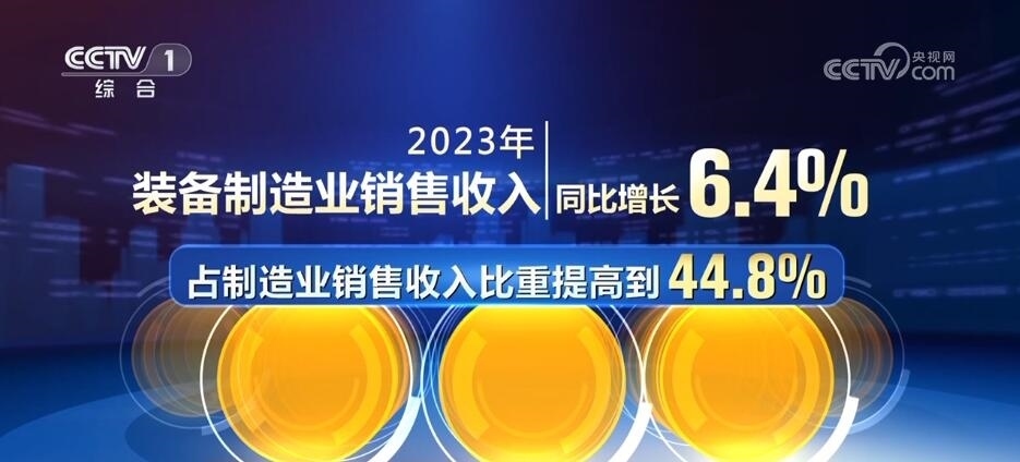 高端制造業(yè)發(fā)展持續(xù)向好,裝備制造業(yè)銷售收入同比增長6.4%,占制造業(yè)銷售收入比重提高到44.8%。其中,電動載人汽車、鋰離子蓄電池、太陽能電池“新三樣”產(chǎn)品相關行業(yè)銷售收入合計同比增長超過五分之一。