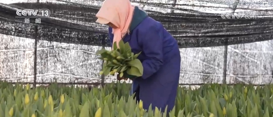 在銀川市興慶區(qū)的這個花卉基地,大棚里的郁金香、百合花含苞待放,工人們正在仔細(xì)挑選成熟的花苞,進(jìn)行裁切、整理、打包,準(zhǔn)備發(fā)往全國市場。