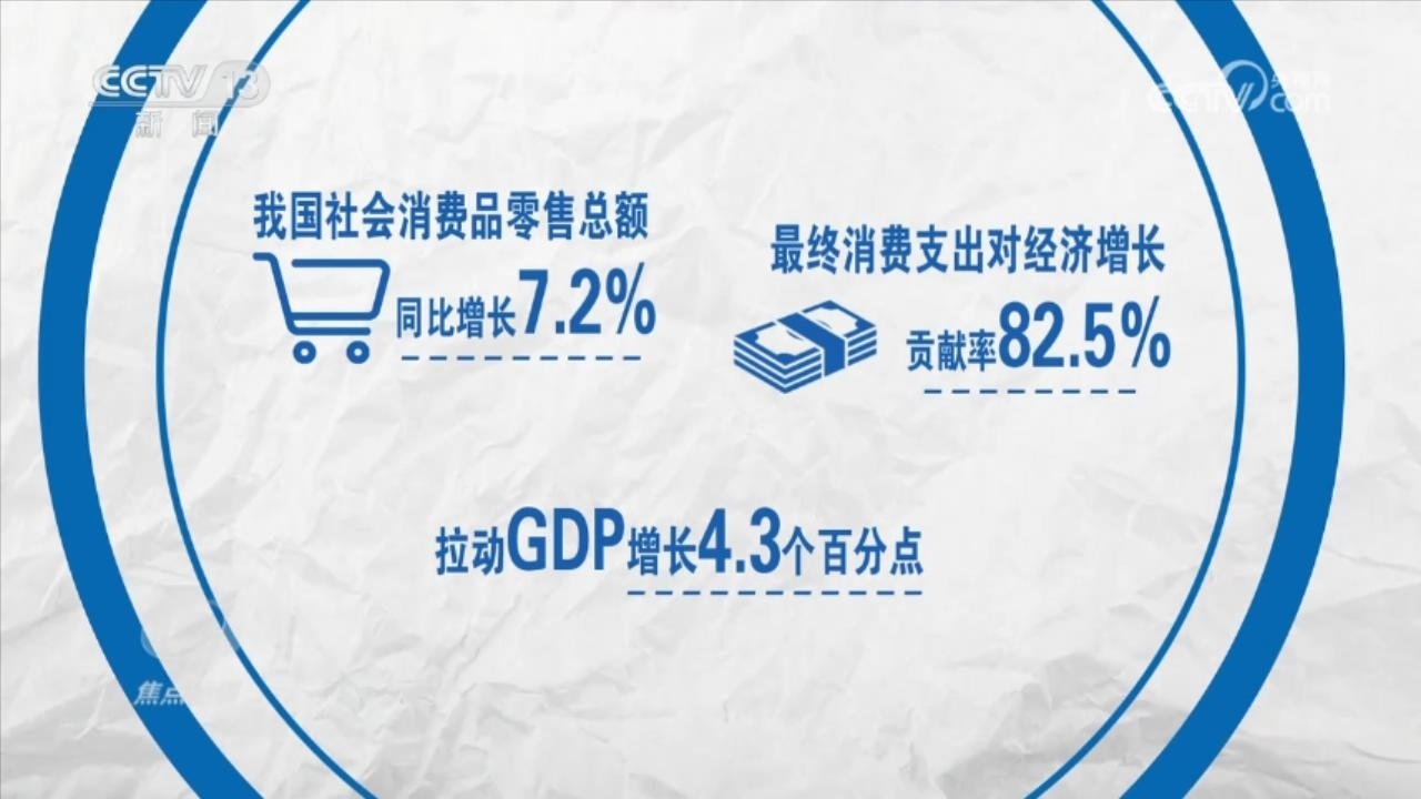 經(jīng)過短暫的波動(dòng),從7月份開始,消費(fèi)再次走出了企穩(wěn)回升的曲線。2023年,我國社會(huì)消費(fèi)品零售總額同比增長(zhǎng)7.2%,最終消費(fèi)支出對(duì)經(jīng)濟(jì)增長(zhǎng)貢獻(xiàn)率達(dá)到82.5%,拉動(dòng)GDP增長(zhǎng)4.3個(gè)百分點(diǎn)。