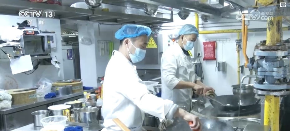 中午不到11時,街道的助老餐廳忙碌起來。工作人員一邊忙著炒菜,一邊還要打包為不方便出門的老人送外賣。