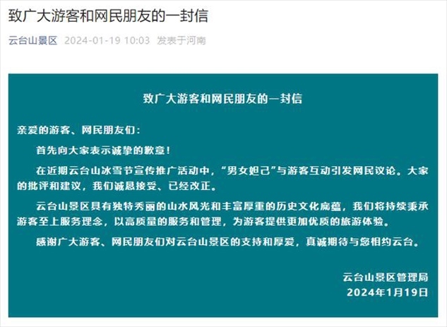 ·云臺(tái)山景區(qū)就“男女妲己”道歉:向大家表示誠(chéng)摯的歉意,已經(jīng)改正。