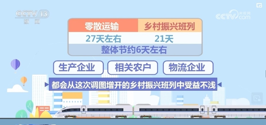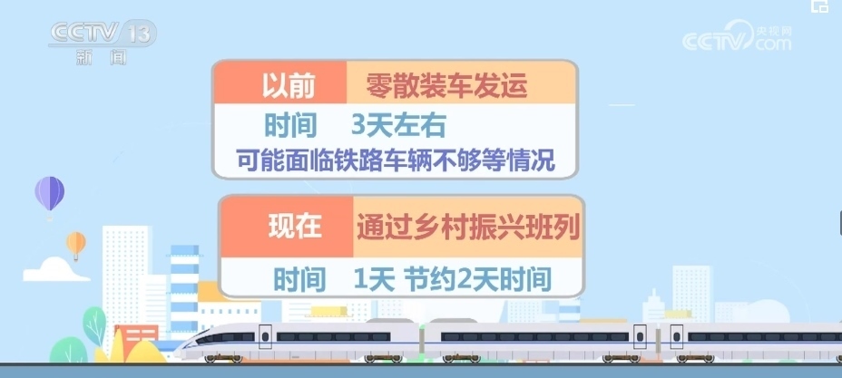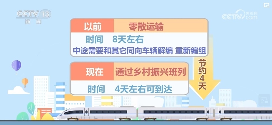 路上耗時(shí),以前零散運(yùn)輸需要8天左右,中途需要和其他同向車輛解編、重新編組,現(xiàn)在通過鄉(xiāng)村振興班列4天左右可以到達(dá),這就節(jié)約了4天時(shí)間。