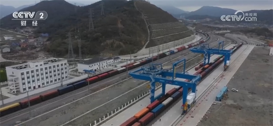 總臺(tái)央視記者 馬佳倫:這里是位于寧波舟山港北侖第一集裝箱碼頭的作業(yè)區(qū)。此刻一輛來自金華,載五十節(jié)車廂,共計(jì)100標(biāo)箱量的列車正在進(jìn)站。去年底甬金鐵路開通運(yùn)營(yíng)以來,寧波舟山港新增一條重要疏運(yùn)通道,世界第一大港寧波舟山港與世界小商品之都義烏(間)運(yùn)行效率大大提升。