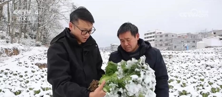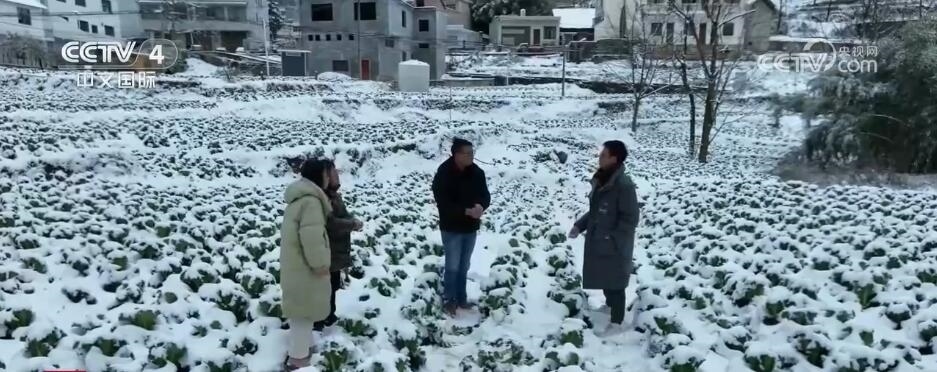 在貴州畢節(jié)螺絲村蔬菜基地,田間地頭白茫茫一片。為應(yīng)對低溫凝凍天氣,當(dāng)?shù)剞r(nóng)技人員現(xiàn)場查看蔬菜長勢,為農(nóng)戶講解蔬菜防凍知識,指導(dǎo)做好防寒抗凍措施。