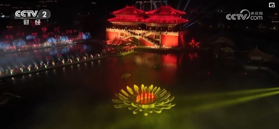 當(dāng)夜幕降臨,八朝古都開封也在燈光的裝扮下流光溢彩。打鐵花是流傳于豫晉地區(qū)民間傳統(tǒng)的煙火,至今已傳承千余年。在清明上河園內(nèi),表演者先將鐵水舀起拋向空中,再用力擊打空中的鐵水,一時間鐵花飛濺、流星如瀑。園內(nèi),亭臺樓閣雕梁畫棟、虹橋清波舟船往來,大型實(shí)景水上演出再現(xiàn)了北宋汴梁的盛世繁榮。
