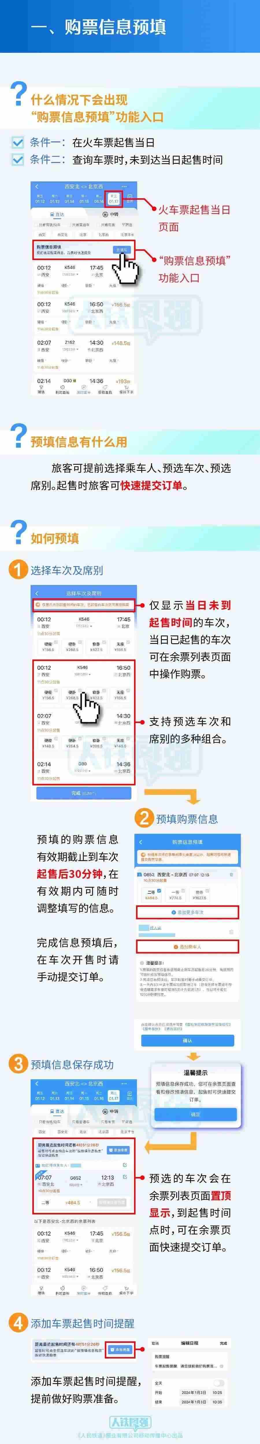 1月26日,2024年2月9日的除夕火車票將正式發(fā)售。2024年春運(yùn)自1月26日開始至3月5日結(jié)束,共40天。2024年春節(jié)假期從2月10日(初一)至2月17日(正月初八),共8天。根據(jù)目前鐵路客票提前15天預(yù)售的規(guī)則類推,1月27日開售2月10日(大年初一)火車票;2月3日開售2月17日(正月初八)火車票。