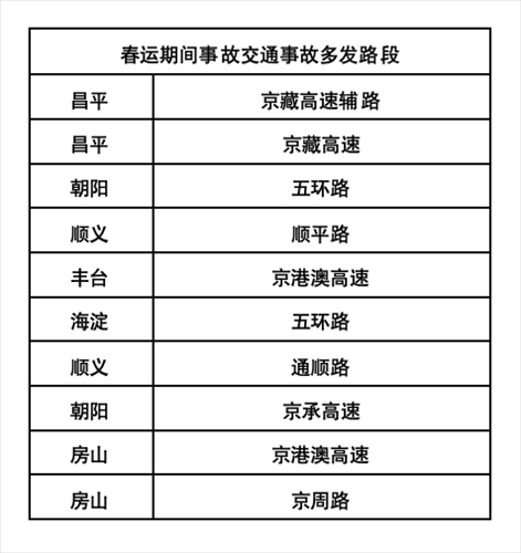 近日,北京交管部門公布2024年春運期間交通流預判和易擁堵路段,交通事故多發(fā)路段。