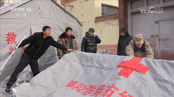 甘肅省臨夏州積石山縣石塬鎮(zhèn)振興社區(qū)副主任孔德義:“他發(fā)揮的作用特別大,因?yàn)樗吘故遣筷?duì)出身,身體素質(zhì)好,搭帳篷這一塊特別強(qiáng)。有他在的話,5分鐘就能完成一個(gè),效率特別高。還有像如何規(guī)避余震帶來(lái)的傷害,他先給先鋒隊(duì)講解,我們?cè)僦饌€(gè)分散開(kāi)給群眾講解,等同于一個(gè)專(zhuān)業(yè)人士帶領(lǐng)著先鋒隊(duì)去幫助更多的群眾,去服務(wù)群眾?!?/p>