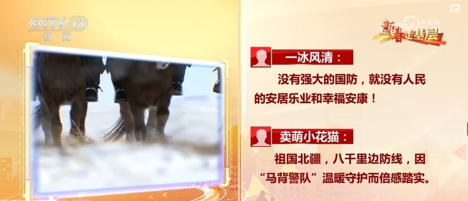 《新春走基層·馬背警隊(duì):風(fēng)雪中的溫暖守護(hù)》播出后,有網(wǎng)友說(shuō):“沒有強(qiáng)大的國(guó)防,就沒有人民的安居樂(lè)業(yè)和幸福安康!”。也有網(wǎng)友說(shuō):“祖國(guó)北疆,八千里邊防線,因“馬背警隊(duì)”溫暖守護(hù)而倍感踏實(shí)?!?br>