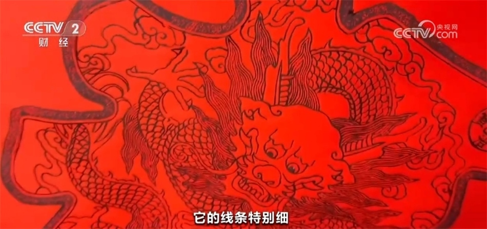 平陽(yáng)木版年畫(huà)非遺傳承人 王軍:我現(xiàn)在手上拿的這一張就是龍年主推的一個(gè)福字年畫(huà),主要以平陽(yáng)木版年畫(huà)最傳統(tǒng)的圖案,以福字為主,突出龍的元素,最難的就是龍的龍鱗、龍須,線條特別細(xì),雕刻的時(shí)候特別難。