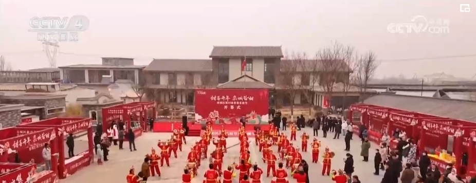 在河北張家口涿鹿縣,首屆新春年貨節(jié)以鼓樓為中心打造了古韻特色街區(qū),街道兩旁張燈結彩,街道上舞龍、鑼鼓等表演精彩紛呈。