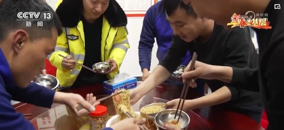 將失聯(lián)人員和車輛引導至國道后,大家驅(qū)車返回了救援站。從中午12時出發(fā),到晚上12時返回,12個小時的救援工作結束后,一碗熱騰騰的泡面是他們今天吃上的第一口熱乎飯。