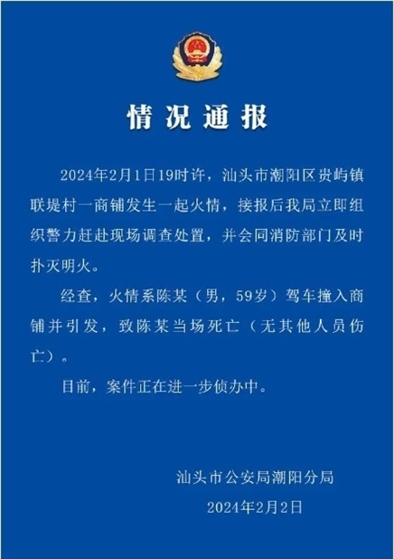·汕頭一男子駕車(chē)撞入商鋪引發(fā)火情,其當(dāng)場(chǎng)死亡。