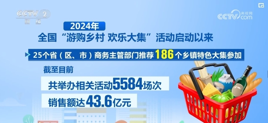 記者從商務(wù)部獲悉,2024年全國“游購鄉(xiāng)村 歡樂大集”活動啟動以來,25個省(區(qū)、市)商務(wù)主管部門推薦186個鄉(xiāng)鎮(zhèn)特色大集參加。截至目前,共舉辦相關(guān)活動5584場次,銷售額達(dá)43.6億元。