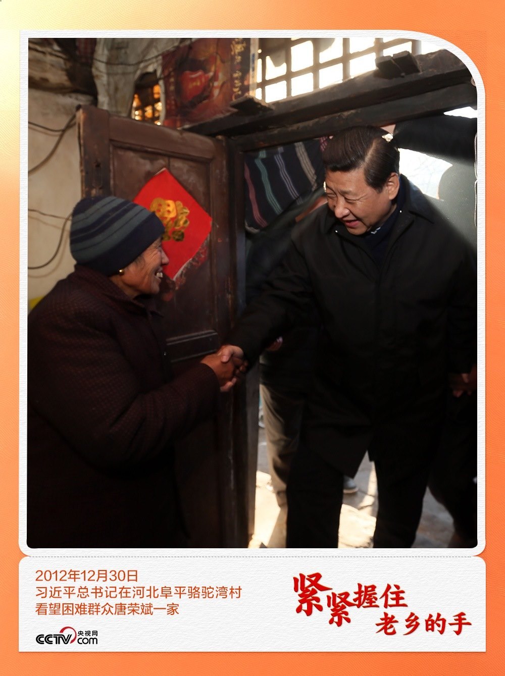 2012年習(xí)近平剛剛擔(dān)任總書記時(shí),中國還有約1億農(nóng)村貧困人口。就任后不久出京考察,他來到貧困縣河北阜平。坐在炕上,他拉著農(nóng)民顧成虎的手說,來你們家里看看,了解你們的生活,看看中央還能為山區(qū)老鄉(xiāng)們再做些什么。