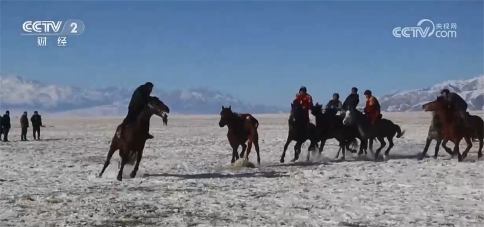 在賽里木湖的冰雪“那達慕”上,周邊的農(nóng)牧民上演了雪地賽馬、叼羊等民俗活動,來迎接即將到來的新春佳節(jié)。