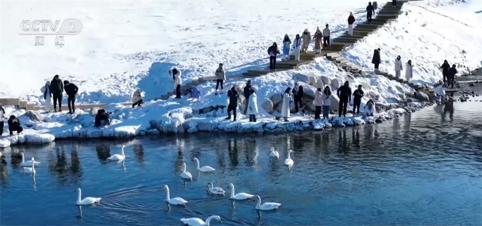 總臺記者 李楠:這里就是天山環(huán)抱中的新疆賽里木湖景區(qū),周圍的群山和湖面仍舊被冰雪覆蓋。在我身后正在舉辦冰雪“那達慕”迎春活動,當?shù)氐霓r(nóng)牧民群眾和來自全國各地的游客正參與其中。