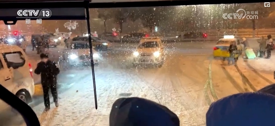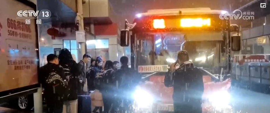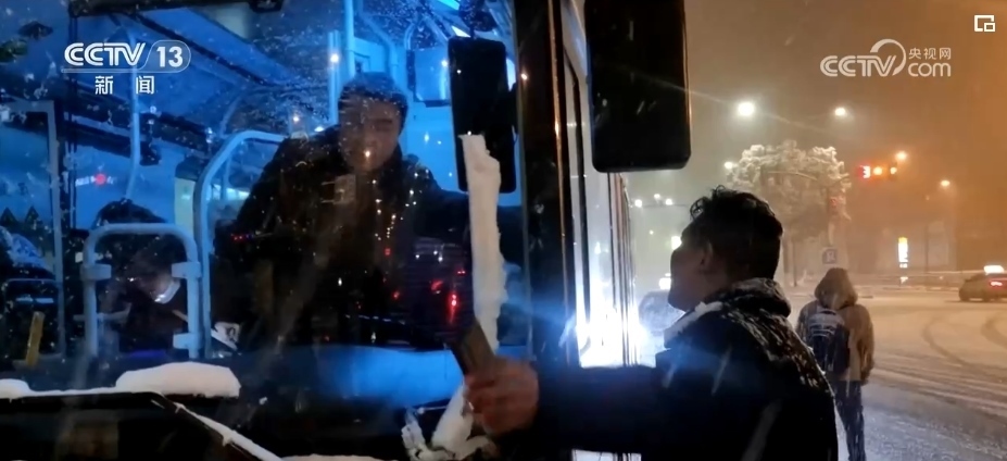 看到一些帶著小孩和老人的乘客沒能擠上車,站在風(fēng)雪中焦急等候,黃勁松和隊友們走上前,帶著他們前往公交站場,提前上車等候發(fā)班。凌晨1時10分,第二趟加班車從車場出發(fā)了。