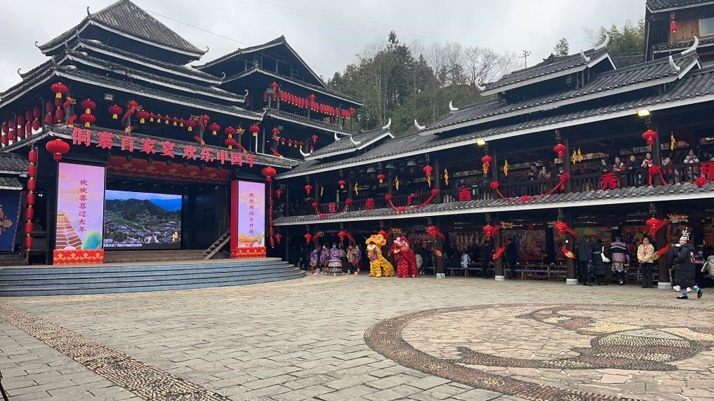 程陽(yáng)八寨景區(qū)侗鄉(xiāng)年味“圈粉”八方游客。新華社記者黃凱瑩 攝